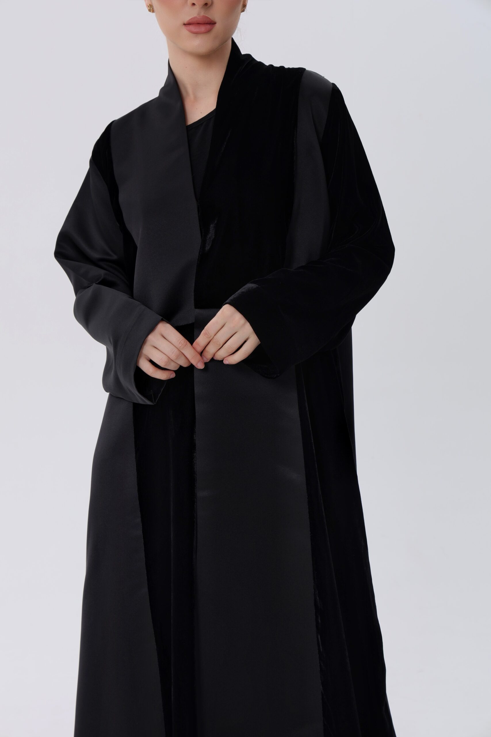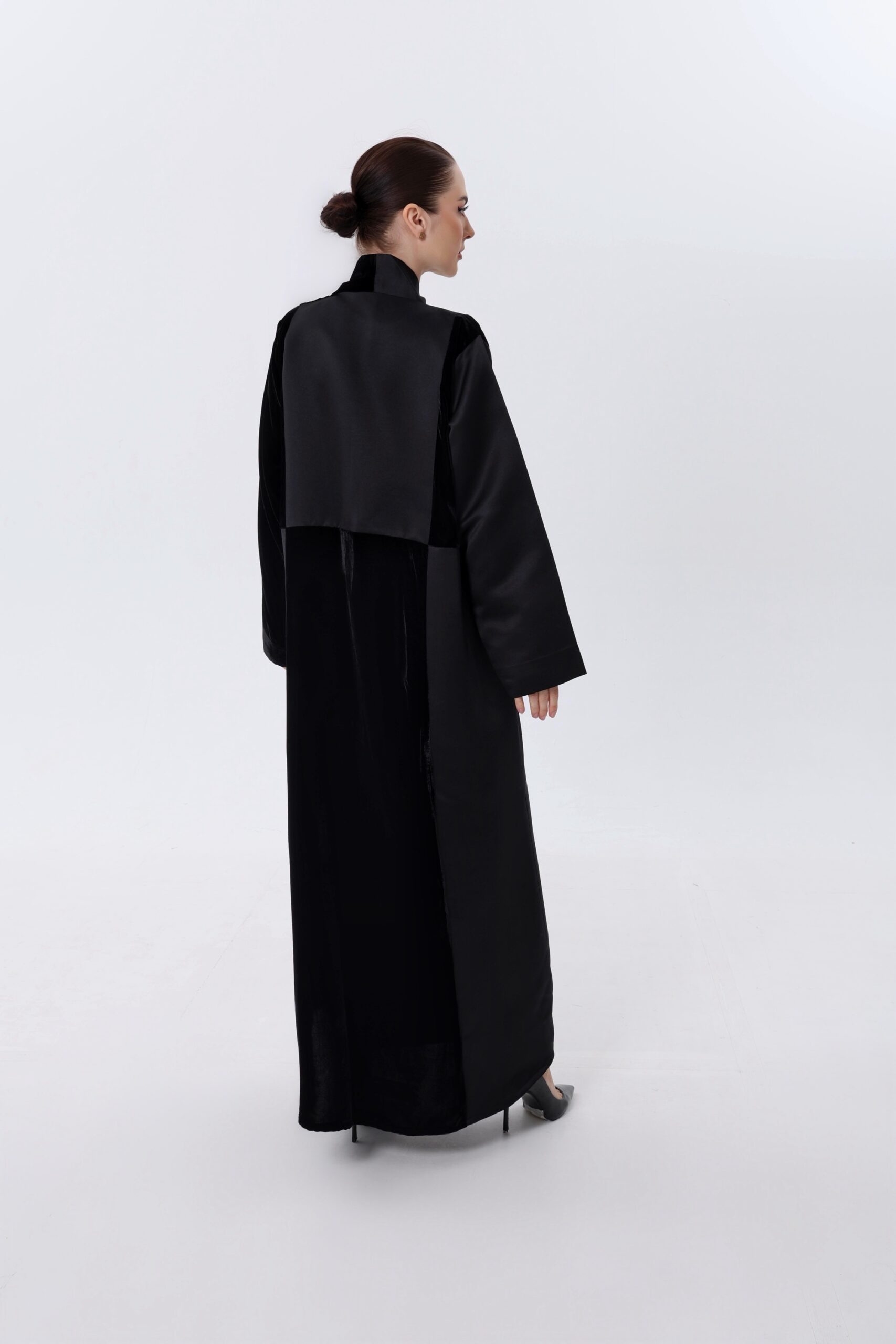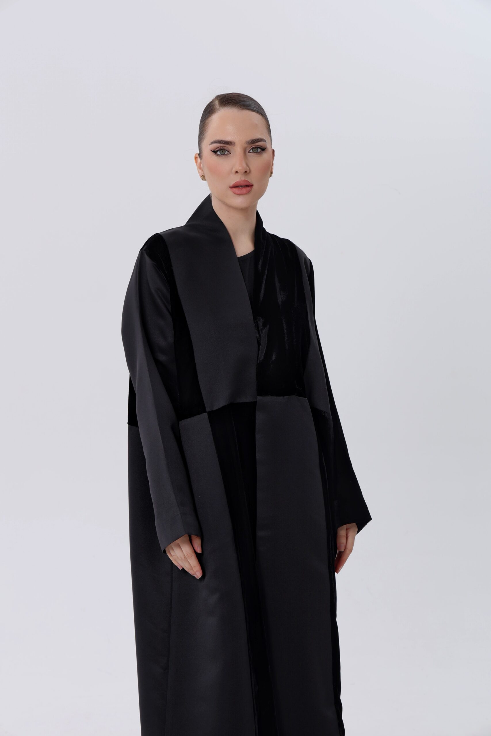 Velvet abaya mixed with bridal satan fabric